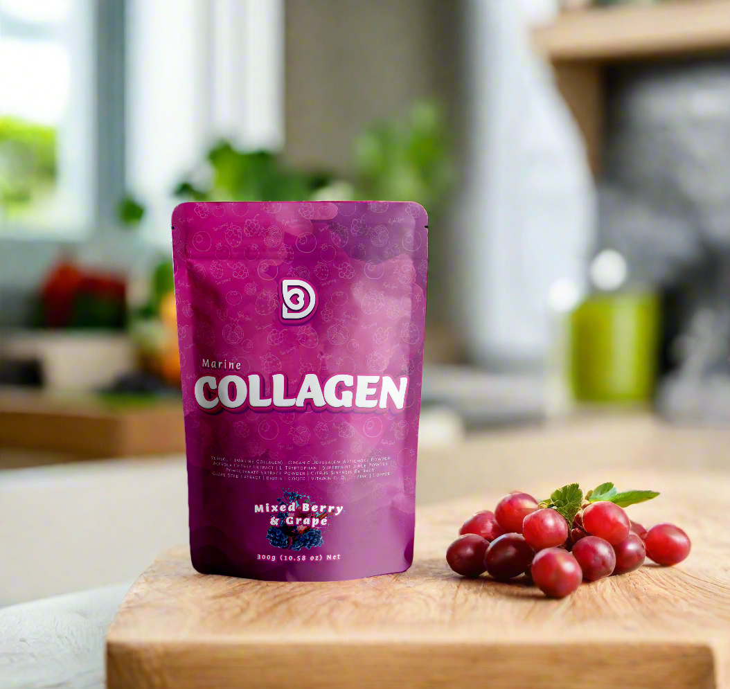 Unlock your skin’s natural radiance with our premium blend of clinically proven marine collagen peptides and nutrient-rich superfoods. Formulated with VERISOL® F Hydrolyzed Marine Collagen, this delicious Mixed Berry & Grape Flavour supplement is your daily ritual for youthful, glowing skin, stronger nails, and healthier hair.